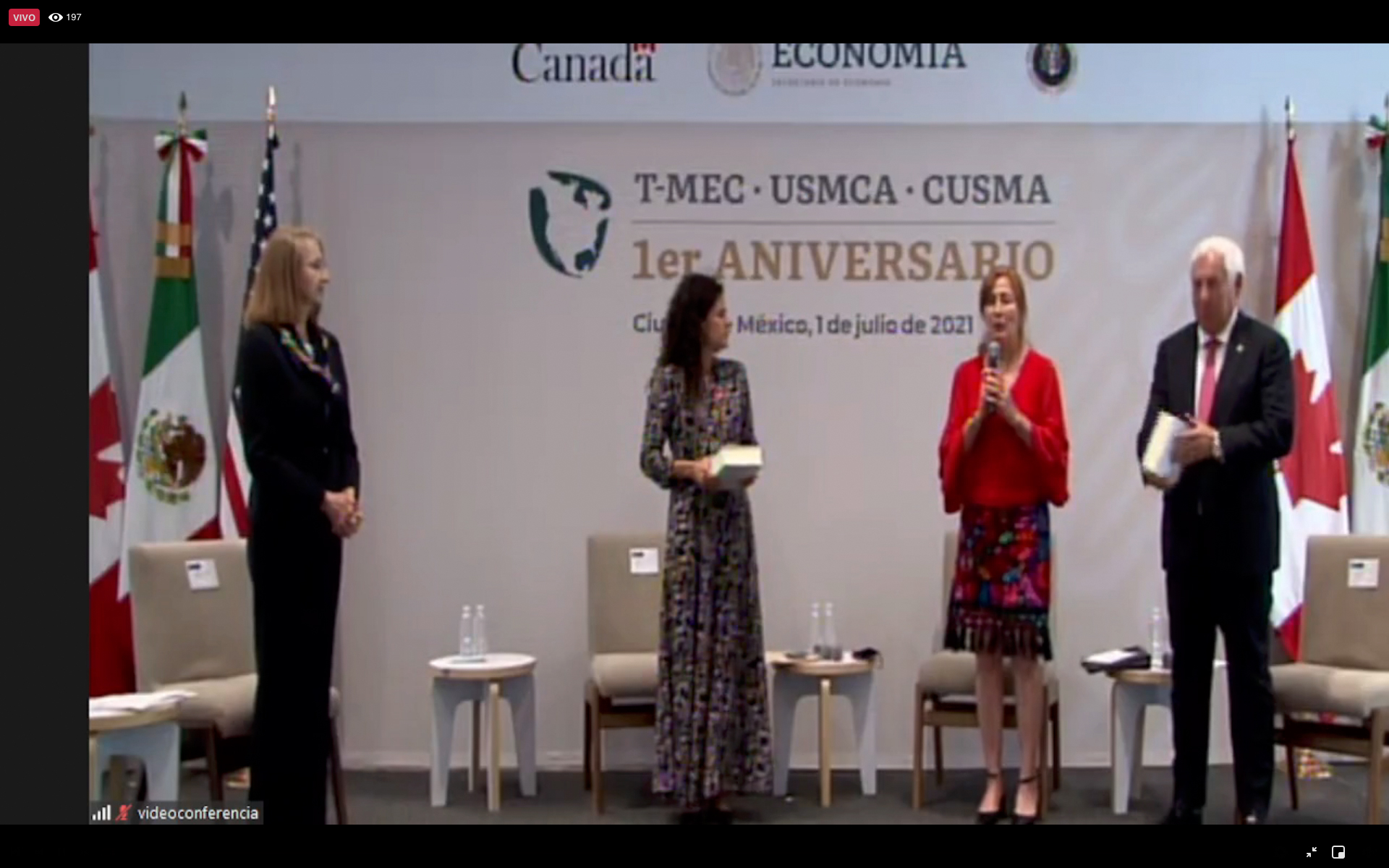 CIUDAD DE MÉXICO. – En el marco del primer aniversario de la entrada en vigor del Tratado entre México, Estados Unidos y Canadá (T-MEC), la Secretaría de Economía organizó el Conversatorio “El Gobierno de México y la implementación del T-MEC”. Participaron las secretarias de Economía, Tatiana Clouthier; de Trabajo y Previsión Social, Luisa María Alcalde; de Medio Ambiente y Recursos Naturales, María Luisa Albores y el secretario de Agricultura y Desarrollo Rural, Víctor Villalobos. La subsecretaria de Comercio Exterior, Luz María de la Mora, fungió como moderadora.