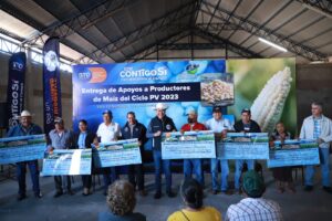 En este lugar, se le dió el apoyo de $300 pesos por tonelada cosechada y comercializada a 292 productores agremiados a tres organizaciones: Sociedad Cooperativa Módulo Valle; Bastión del Granero del Bajío y Unión de Ejidos 16 de Abril.