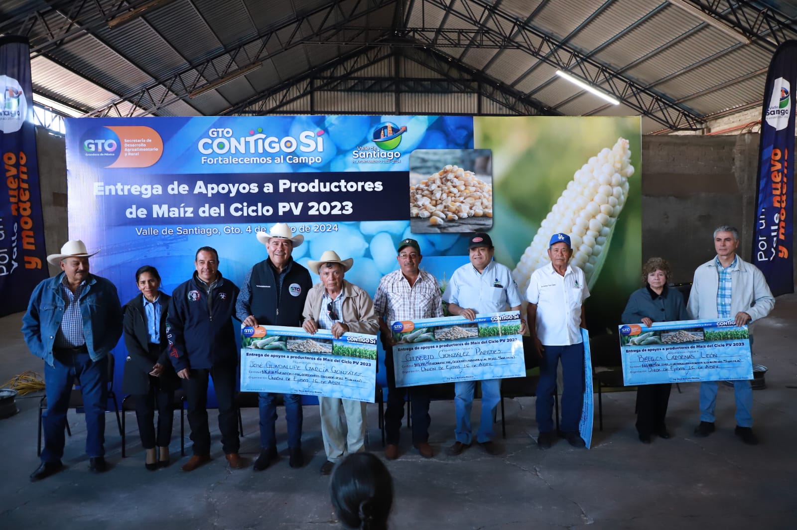 VALLE DE SANTIAGO, GTO.- El Gobierno del Estado cumple con su compromiso de auxiliar a las mujeres y hombres del campo frente a las dificultades, por ello, hoy entregó los apoyos económicos prometidos a los productores de maíz que recibieron un bajo precio por la venta de su cosecha.