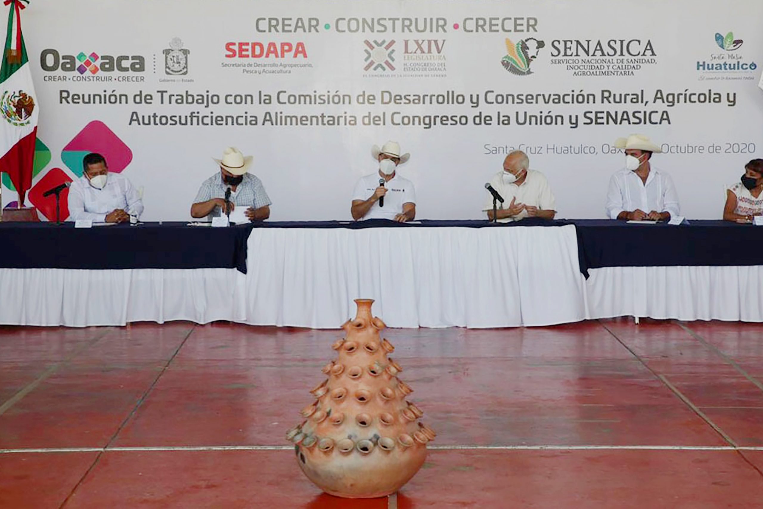 En la mesa de trabajo participaron también la diputada federal Margarita García; el representante de Agricultura en Oaxaca, Luis Manuel Carmona Rodríguez; el representante estatal del Senasica en Oaxaca, Anuar García, el presidente municipal de Santa María Huatulco, Giovanne González García, funcionarios estatales y federales, y representantes de los Sistema Producto de Maíz y Frijol del estado, productores de limón y ganaderos, entre otros.