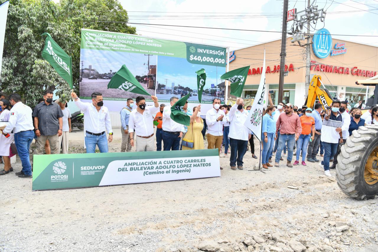 Ciudad Valles, San Luis Potosí.- Ciudad Valles tendrá durante todo el sexenio una inversión de 3 mil millones de pesos para obras de infraestructura, afirmó el Gobernador del Estado, Ricardo Gallardo Cardona durante el evento de arranque de los trabajos de rehabilitación del bulevar Adolfo López Mateos (Camino al Ingenio) de este municipio, dando por fin apoyo a la industria azucarera que genera grandes beneficios para la economía de la población local y estatal.
