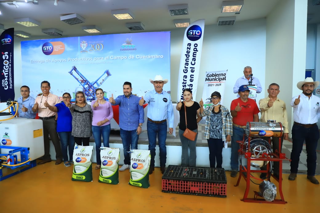 CUERÁMARO, GTO.- Para impulsar la actividad económica de las familias que dependen de la agricultura, la Secretaría de Desarrollo Agroalimentario y Rural (SDAyR) del Estado, en coordinación con el gobierno municipal, entregó molinos de nixtamal, semilla de maíz, fertilizante y equipos agrícolas en Cuerámaro.