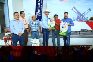 Como parte de la jornada, se realizó la entrega de semilla mejorada de maíz para riego, con una inversión de 10 millones de pesos, así como pólizas del Seguro Agrícola Catastrófico, en beneficio de 750 productores.