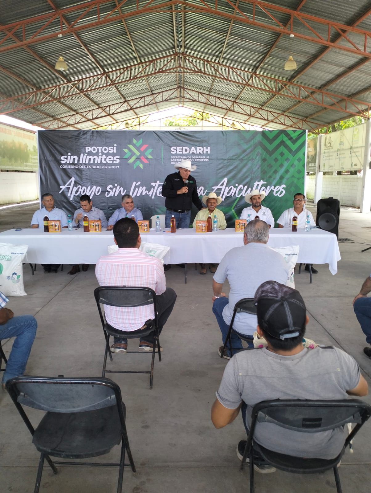 SAN LUIS POTOSÍ, SLP.- La Secretaría de Desarrollo Agropecuario y Recursos Hidráulicos (Sedarh) entregó ocho toneladas de endulzante natural para abejas de miel (Apis mellifera) en la región Huasteca, como parte del programa de rescate de la apicultura y del compromiso de brindar apoyo sin límites al campo potosino.