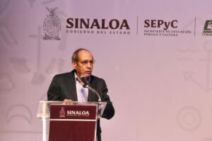 CULIACÁN, SIN.- En reconocimiento al significativo lugar que se ganó en la historia educativa de México al formar maestros con espíritu nacionalista, con vocación de servicio y sobre todo, preparados para luchar contra el analfabetismo, los fanatismos de la época y con los cimientos necesarios para construir las bases de la identidad nacional actual, esta tarde, el escritor José Luis López Arciniega presentó su libro «La presencia de la Escuela Normal Rural de Jalisco, Nayarit, en Sinaloa», en las instalaciones del Centro Sinaloa de las Artes «Centenario», histórico recinto que fungió como sede de este emotivo evento que tuvo como invitado de honor al Gobernador Rubén Rocha Moya, quién a través de sus comentarios destacó el aporte cultural de esta obra, editada por el Colegio de Bachilleres del Estado de Sinaloa que dirige Santiago Inzunza Cázarez.
