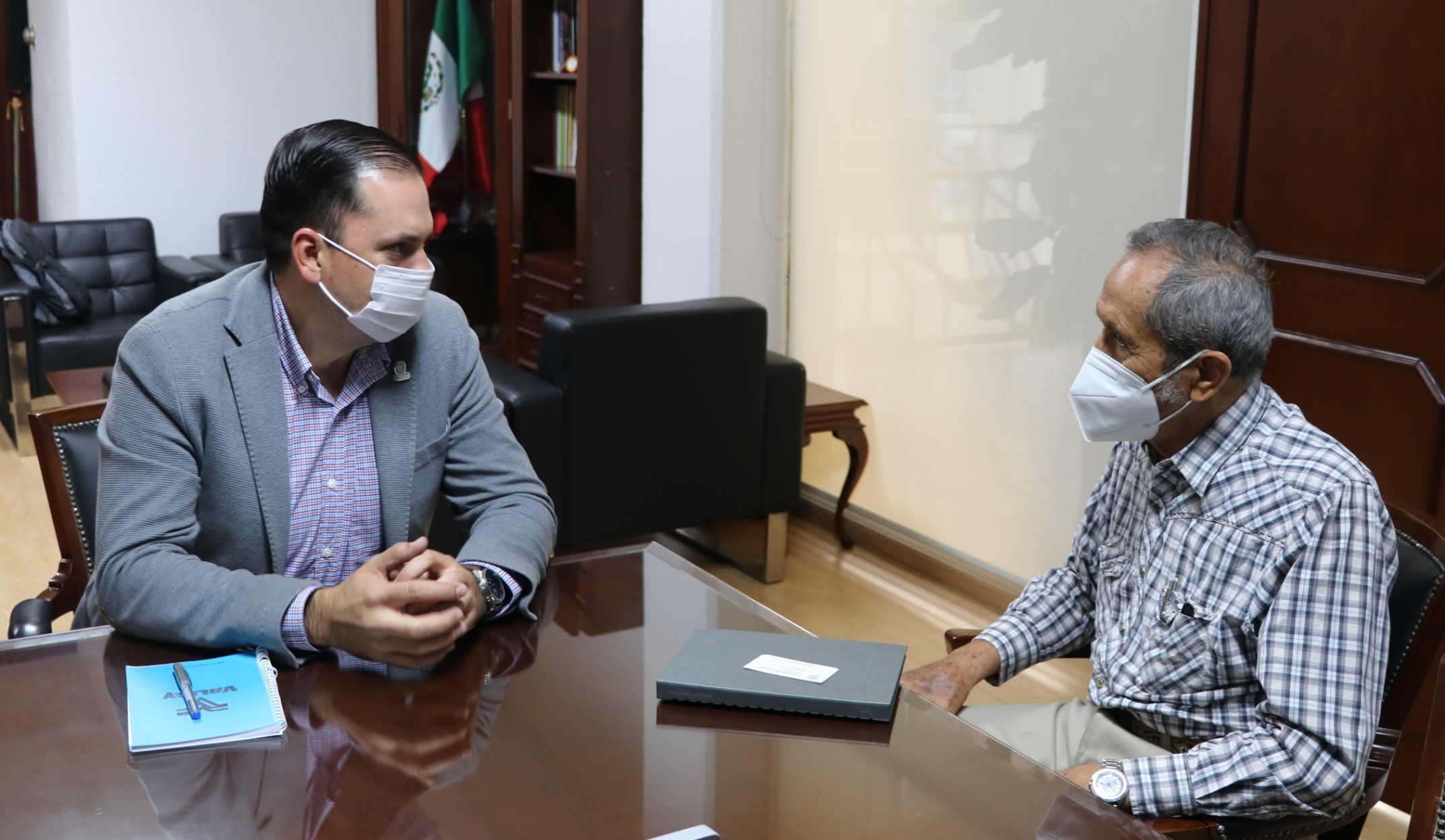 AGUASCALIENTES, AGS. – El secretario de Desarrollo Rural y Agroempresarial, Miguel Muñoz de la Torre recibió la visita del nuevo agente de crédito de la Financiera Nacional de Desarrollo Agropecuario, Rural, Forestal y Pesquero, Víctor Manuel Armenta Gómez con quien comentó los diversos programas estatales que impulsa esta dependencia para el fortalecimiento del campo de Aguascalientes.